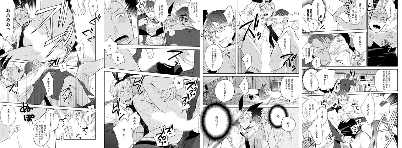 僕を挑発しに来たんだろう…?会社の忘年会でうさ耳+レオタードの仮装をさせられた新人の紺(こん)。酔っぱらってしまった紺はバニー姿のまま一人放置され、気付けば服もスマホも見当たらない。ひとまず会社に戻るとそこには鬼部長と恐れられる真田(さなだ)が…! 慌てて着替えを引っぱりだそうとする紺だが、真田の目の前には突き出たお尻がプリプリと揺れるーー。静かなオフィスに熱く、激しく、倒錯的な夜が訪れようとしていた。その他、刺青を入れた訳あり情夫や生徒に監禁される先生などバラエティに富んだ短編も収録☆