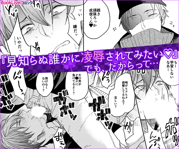 「オラ、奥まで咥えろよ」無理やりヤラれたい願望がある前田成俊(まえだなるとし)。抵抗できない状況で、無理やり見知らぬ男のモノをしゃぶらされて、喉奥をガンガンに突かれて――。怖いのに、嫌なのに、アソコはビンビンで、ケツも突っ込まれるのを待ってる…。そんなヤバイ願望が、ある日突然叶ってしまう!?